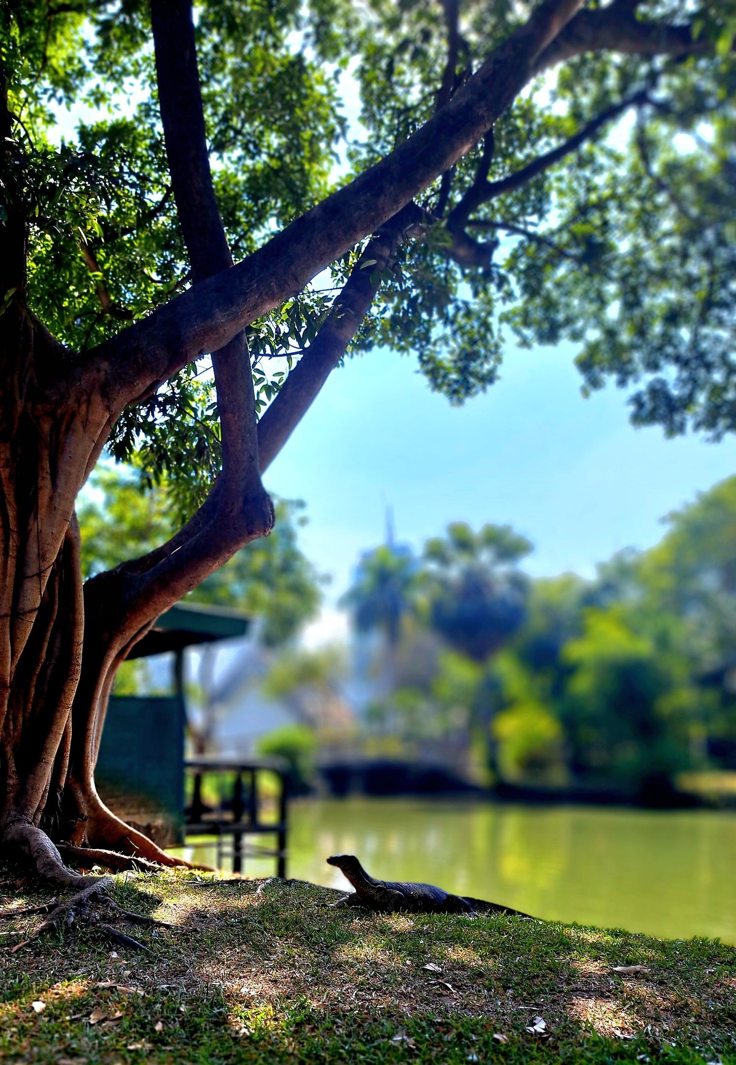 Der Lumphini Park ist bekannt für seine besondere Mischung aus urbanem Flair und Naturidylle. Auf den Seen des Parks schippern bunte Tretboote, während direkt daneben die imposante Skyline Bangkoks aufragt. Besonders eindrucksvoll sind die Wasserwarane, die bis zu zwei Meter lang werden können und gemütlich durch die Kanäle schwimmen oder am Ufer sonnenbaden. Keine Sorge: Sie sind harmlos, solange man ihnen respektvoll begegnet.