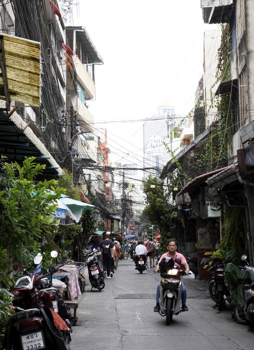 Das Viertel ist Teil des alten Handelszentrums von Bangkok und war einst geprägt von chinesischen Einwanderern, die hier Werkstätten, Lagerhäuser und Märkte betrieben. Heute spürt man diesen historischen Charme an jeder Ecke: enge Gassen, pastellfarbene Häuserfassaden, jahrhundertealte Schreine und kleine Handwerksbetriebe, die Motorenteile, Antiquitäten oder Metallwaren verkaufen.