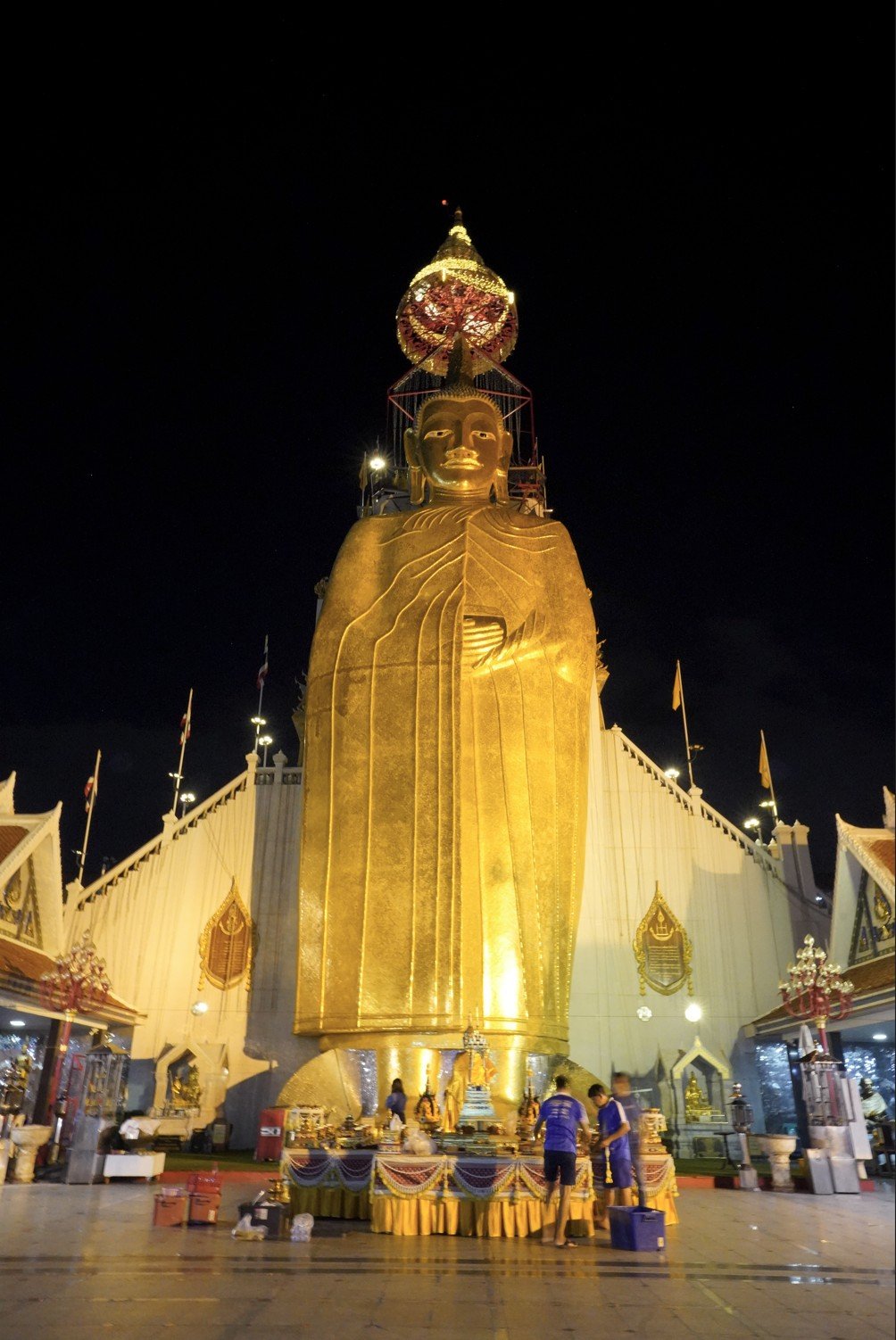 Der Tempel wurde bereits im späten 18. Jahrhundert während der Ayutthaya-Periode gegründet. Die berühmte Statue des stehenden Buddha wurde jedoch erst 1867 unter der Herrschaft von König Rama IV. begonnen und fast 60 Jahre später fertiggestellt. In der Statue selbst sind kostbare Reliquien aus Sri Lanka eingearbeitet, was den Ort zu einem der spirituell bedeutendsten Tempel Bangkoks macht.